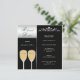 This elegant silver on black rehearsal dinner invitation features two glasses for a toast to the happy couple. You are able to customize this design with your own rehearsal dinner invitation details. Copyright henishouseofpaper