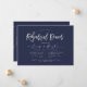 Elegant and modern silver handwritten script Rehearsal Dinner Invitations and Navy Blue, a DIY background colour.