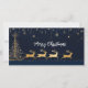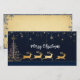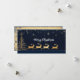 Cette carte de Noël élégante présente une illustration magnifiquement détaillée de quatre rennes d'or tirant un traîneau festif orné d'un sapin de Noël. Placé contre un arrière - plan bleu profond, le design est complété par de délicats flocons de neige dorés et des étoiles, ajoutant une touche de scintillement festif. L'inscription "Joyeux Noël" en caractères blancs complète la carte, ce qui en fait un choix parfait pour répandre la joie des fêtes. Sur le dos, la carte présente une page vierge de style vintage avec des flocons de neige décoratifs, offrant un espace suffisant pour écrire un message personnel et sincère. Parfait pour envoyer des voeux de vacances chaudes à des proches.