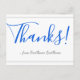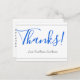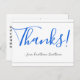 Ce design élégant et respectable de carte postale de remerciement comporte le message "Merci !" en texte bleu sur le devant, ainsi qu'un message personnalisé sur le dos. Il pourrait être utilisé pour montrer de l'appréciation à quelqu'un qui a fait une action spéciale.