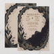 Ce design faire-part de mariage captivant présente une toile noire riche, magnifiquement contrastée par des ornements abstraits ornés. Les bordures sont ornées de motifs de vigne et de fleurs tissés de manière complexe, créant un cadre luxueux qui respire l'élégance et le raffinement. Ce design incarne une romance et une opulence intemporelles, ce qui en fait l'endroit idéal pour une célébration mariage remplie de grâce et de grandeur.