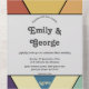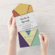 This modern wedding invitation is perfect for the couple that wants to make a stylish statement. The invitation features bold retro calligraphy on a white rectangle with a vibrant and groovy abstract geometric background. The artistic combination of old and new gives any event an inviting and unique touch. Whether you’re planning a simple gathering or a big celebration, this invitation will make sure your guests know it’s an occasion to remember.