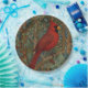 Elegant Retro Cardinal Art Nouveau red bird in a woodland landscape - customizable