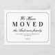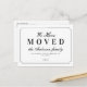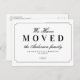 Announce your new home to family and friends with this simple retro black and white design of script lettering and a black retro frame.