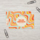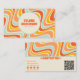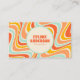 Colourful and fun with details and colours that make your business catchy and different. A Vintage retro Psychedelic colourful wavy lines square business card. That features a handmade groovy boho abstract wavy lines With blue and orange and beige cream colours. It has nostalgic seventies and sixties vibes and colours and groovy fonts. With customizable name and profession and social media . Perfect for a small business branding.