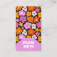 A Vintage retro colourful floral flowers liquid business card. That features a handmade groovy pattern boho abstract flower daisies .It has nostalgic seventies vibes and colours and groovy fonts. With modern customizable name and profession and QR code.