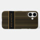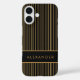 This cellphone casing features a sleek and elegant design with vertical gold stripes on a black background, giving it a refined and luxurious appearance. A horizontal black band across the centre showcases the owners name in bold, gold uppercase letters, adding a personalized and premium touch. The overall aesthetic is modern, sophisticated, and stylish, ideal for someone who values both fashion and function.