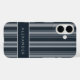 This cellphone casing features a sleek and elegant design with vertical gold stripes on a black background, giving it a refined and luxurious appearance. A horizontal black band across the centre showcases the owners name in bold, gold uppercase letters, adding a personalized and premium touch. The overall aesthetic is modern, sophisticated, and stylish, ideal for someone who values both fashion and function.