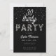 A simple, modern, elegant and chic 30th birthday party invitation template featuring a black background, the word PARTY covered in rhinestones (simulated, not real stones, this is a digital effect), modern calligraphy script and typography in white. A chic, timeless design for a woman on her thirtieth birthday.