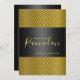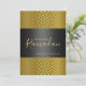 Luxurious Ramadan or Eid Mubarak greeting card with engraving gold rhombus pattern and black banner with monogram script font type. Greetings to your friends and family who will be fasting during Ramadan. All text could be easily customized.