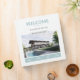 A minimalist elegant vacation rental binder featuring a large photo on a white background with traditional classic typography. The perfect versatile binder for the guest information for your villa, cottage or holiday home! A great way to welcome guests to your rental property and help them to settle in!