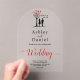 This elegant black-and-white arch acrylic wedding invitation is perfect for a modern wedding. The simple design features elegant black calligraphy and a bride and groom illustration on a clear transparent background.