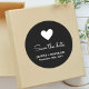The "Elegant Romantic Heart Black Wedding Save the Date Classic Round Sticker" marries simplicity with elegance. Adorned with a beautiful heart design against a chic black background, this sticker is a stylish way to announce your wedding day. Its classic round shape and romantic motif create a memorable impression, ensuring your guests mark their calendars in anticipation. Ideal for couples seeking a blend of modern style and timeless romance to kickstart their wedding festivities.