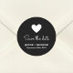 Elegant Romantic Heart Black Wedding Save the date Classic Round Sticker