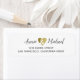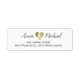 Personalized and elegant return_address_label with the image of a faux gold heart between the bride and groom names