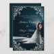 This stunning wedding invitation design captures a beautifully lit silhouette of the bride and groom against a dark backdrop, symbolizing love and intimacy. The ornate floral and elegant typography enhance the sophistication of the card, making it perfect for a memorable wedding announcement.
