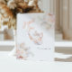 This table sign is adorned with delicate rosy floral patterns, setting a romantic and sophisticated tone for the event.