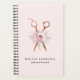 Planificateur moderne et élégant pour coiffeurs avec ciseaux en or rose faux cuivre, roses roses et blanc et police calligraphie élégante.