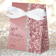 These elegant rose gold glitter and diamond sided 80th Birthday favour boxes are perfect for your or your loved one's eightieth birthday party favours. They're chic, trendy and stylish while at the same time being classy. The modern yet traditional fonts are crisp and clean and make these thank you favour boxes unique and one-of-a-kind. These sparkly and glamourous boxes are decorated on all sides. They're very easy to customize and make your own. Select "Personalize this Template" and type in your information. In seconds you'll see your beautiful favour boxes.