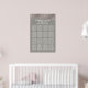 This elegant rose gold and grey wedding seating chart poster is perfect for a classy wedding. The design features a stunning blush pink leafy frame on a dark grey background and is paired with a dazzling cursive font. This wedding poster includes enough room for up to 16 tables (160 guests). In addition to the placement of each guest, personalize this sign with the names of the bride and groom and the wedding date.