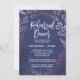 This elegant rose gold and navy rehearsal dinner invitation card is perfect for a classy event. The design features a stunning blush pink leafy frame on a dark blue background and is paired with a dazzling cursive font.