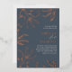 Discover this enchanting and original artwork, featuring graceful floral and botanical stems in authentic foil on a deep dusty blue backdrop. With its distinct and refined aesthetic, it's an ideal choice for the contemporary couple in search of elegance. On the reverse of this card is a contrasting blush pink watercolor background. Easily tailor it with your individual details to add a personal flourish that mirrors your love story.