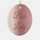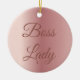 This modern and elegant custom ornament has a faux rose gold background image. It says Boss Lady in a beautiful script lettering.
