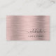 Elegant Rose Gold Brushed Metallic Monogram Name Script Business Card. Modern, simple, elegant typography design. Perfect for hair salon, hair stylist, salon owner, nail salon, and beauty salon.