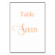 Elegant rose gold calligraphy table seven 7 number
