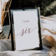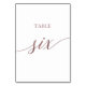 This elegant rose gold calligraphy table six table number is perfect for a simple wedding. The neutral design features a minimalist card decorated with romantic and whimsical faux rose gold foil typography. The card prints on the front and back (double-sided). Other table numbers in the collection are sold separately.