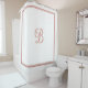Classic and stylish monogrammed shower curtain. This design features rose gold double border script monogram letter. Personalize the script monogram letter with your favourite letter. first or last name initial. This rose gold and white colour shower curtain will be perfect as personalized gift.