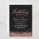 Elegant Rose Gold Glitter Black 40th Birthday Invitation
