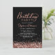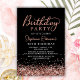 Elegant Rose Gold Glitter and Black 40th Birthday Invitation. Make your celebration unforgettable with this modern and stylish Rose Gold Glitter Birthday Invitation. Featuring a chic blush pink rose gold glitter border and a bold black background, this design highlights a trendy hand-lettered swash tail calligraphy font for a feminine and sophisticated touch. Perfect for milestone celebrations, this versatile invitation can be customized for any age—whether it's a sweet sixteen, 18th, 21st, 30th, 40th, 50th, 60th, 70th, or beyond! Planning a coordinated party? Contact me for matching items or personalized assistance.