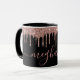 Elegant Rose Gold Glitter Drips Monogram Script Mug