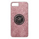 Elegant Pink Rose Gold Glitter Effect Monogram Initial, glamour fancy Rose gold pink glitter iphone case