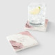 This elegant custom stone coaster for newlyweds features rose gold abstract agate accented with gold glitter on a white background. Personalize with your monogram initial and names along with wedding date. Designed by Susan Coffey.