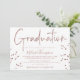 A chic, modern and elegant rose gold glitter script typography graduation party invitation with glitter sparkle confetti on editable white and a glittery rose gold background at the back. A luxury and elegant theme. Celebrate the graduate!