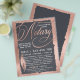 Elegant, trendy flyer for notary loan signing agent featuring rose gold and silver grey framed background and handwritten calligraphy script ''notary' in rose gold color. Personalize with your details.