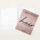 Elégant, tendance carnet de rendez-vous / planificateur pour coiffeur, salon de coiffure avec arrière - plan rose corail motif et script de calligraphie manuscrit "cheveux" en noir profond. Personnalisez avec un nom sur l'avant et des détails sur l'arrière.