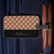 This elegant luggage tag features rose gold jewel tufted pattern with bottom black border. Add your name to personalize. Perfect for your next vacation.