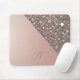Showcasing a brushed rose gold shimmer design with sparkling glitter accents and a customizable first letter monogram in flowing script, this chic mouse pad is the perfect gift for bridal showers, birthdays, and a chic accessory for your desk.