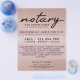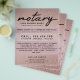 Elegant, trendy flyer for notary loan signing agent featuring rose gold coral pattern background and handwritten calligraphy script ''notary' in deep black colour. Personalize with your details.
