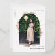 This elegant real foil white and rose gold botanical graduation announcement card features a front photo arch with leafy rose gold frame, and a full photo back of the card.