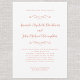 Elegant and simple wedding invitations in beautiful rose gold pink colour and white are classic, formal and timeless. Borderless design allows you to easily choose the paper shape for your invitation to invite guests to your celebration. Two decorative flourishes each containing a single heart delicately envelope the name of the bride and groom. A single line of text at the top reads together with their parents but may be edited to suit your needs. Other text configurations are available in this invitation suite design. For optimal results follow template example capitalizing words as in sample.