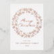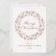 Elegant holiday card with "Merry Christmas" displayed in a rose gold foil calligraphy script encircled by a wreath of rose gold foil snowflakes and pine branches on a white background. Personalize the front of the non-photo holiday card by adding your name and the year. The back of the modern holiday card features your custom message with a beautiful snowflake pattern.