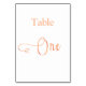 The table number is written with an elegant hand lettered style script. Rose gold letters, white background. This table number is also available in black.