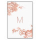 Elégante simple florale rose d'or faux imprimé, carte table mariage. Ce design classique et sophistiqué est parfait pour une réception de mariage classe, élégante et branchée. Personnalisez avec des numéros de table personnalisés sur le devant ou ajoutez votre propre message personnel en cliquant sur le bouton "customiser". Ajoutez également votre propre monogramme customisé initial sur le dos. Toute la conception d'impression photo.