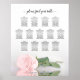 Ce tableau de 13 sièges mariages de table présente une belle rose rose rousse reflétant dans l'eau avec des vagues et des ondulations. Le titre dit "s'il vous plaît trouvez votre table" dans élégante calligraphie de script en dentelle. Il y a de la place pour les noms du couple et la date du mariage. Ce graphique a des affectations de table pour 130 invités - 10 personnes par table.