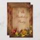 Womens' sophisticated elegant summer, fall custom 75th birthday party invitations with a chic autumn brown printed wood frame country collage with a cute beautiful butterfly, romantic, pretty yellow vintage roses and flowers and stylish burnt orange printed ribbons. These classy, glamourous floral girly invites - personalizable for any age - have an old fashioned elegance look. These lovely rustic country garden nature themed invites are beautifully decorated on both sides. All of the text can be easily customized to meet your needs and you can change the font style, colour and size of font if you desire. If you need any assistance customizing your product please contact me through my store and I will be happy to help. PLEASE NOTE: All invites on Zazzle have flat printed images.