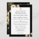 Design features an elegant black background with sepia roses surrounding a white rectangle displaying your own wording. Text is displayed in the traditional format for a Catholic wedding invitation. Back displays a large image of a beautiful sepia rose against a black background. Gorgeous design is very pleasing to the eye.